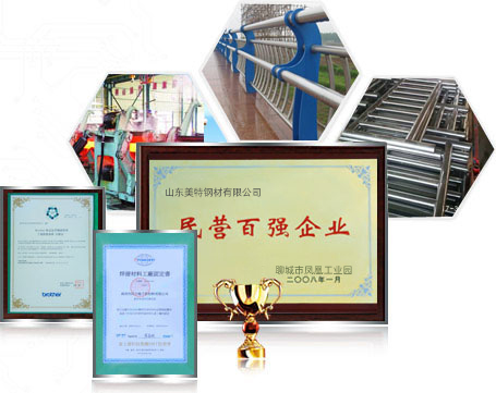 山東美特鋼材有限公司(15863566668)是常年專業(yè)從事生產(chǎn)、銷售內(nèi)外襯不銹鋼復(fù)合管,不銹鋼復(fù)合管護(hù)欄的廠家,公司擁有完整的不銹鋼及不銹鋼復(fù)合管生產(chǎn)線24條,以及各類金屬加工設(shè)備多套(數(shù)控等離子切割機(jī)、沖床、冼床等),公司還擁有獨(dú)立的鍍鋅和噴塑車間,良好地處理好鋼板表面效果。 公司優(yōu)勢:一、專業(yè)性強(qiáng)1.專業(yè)設(shè)計(jì)、制作和安裝不銹鋼復(fù)合管工程及金屬欄桿工程。集設(shè)計(jì)、生產(chǎn)、銷售與安裝為一體的完整體系。2.專業(yè)應(yīng)于:橋梁欄桿、市政建設(shè)、景觀護(hù)欄、體育器材、車輛機(jī)構(gòu)、紡織機(jī)械、醫(yī)療設(shè)備等二、質(zhì)量過硬1.通過IS09001:2000質(zhì)量體系認(rèn)證2. 獲得“全國質(zhì)量、服務(wù)、信譽(yù)AAAA及”企業(yè)稱號(hào),“中國綠色環(huán)保建材產(chǎn)品”,“中國優(yōu)質(zhì)建材產(chǎn)品”…